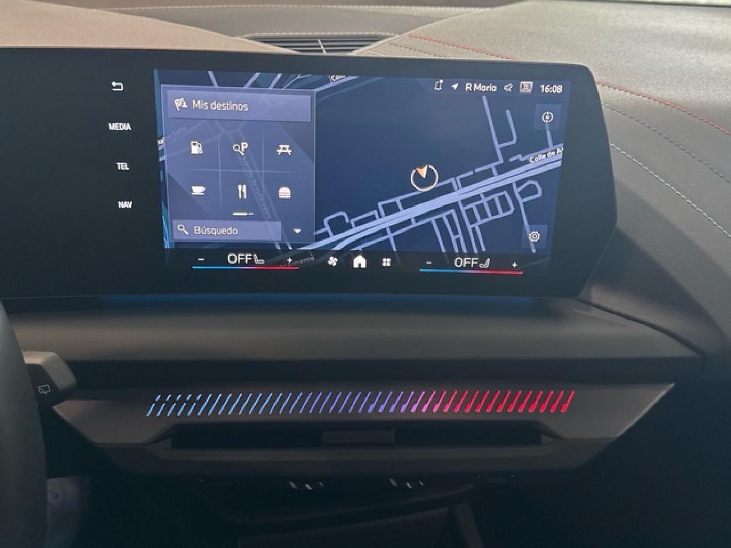 - Volante multi-función en aluminio y cuero sintético ajustable en altura y en profundidad controles táctiles